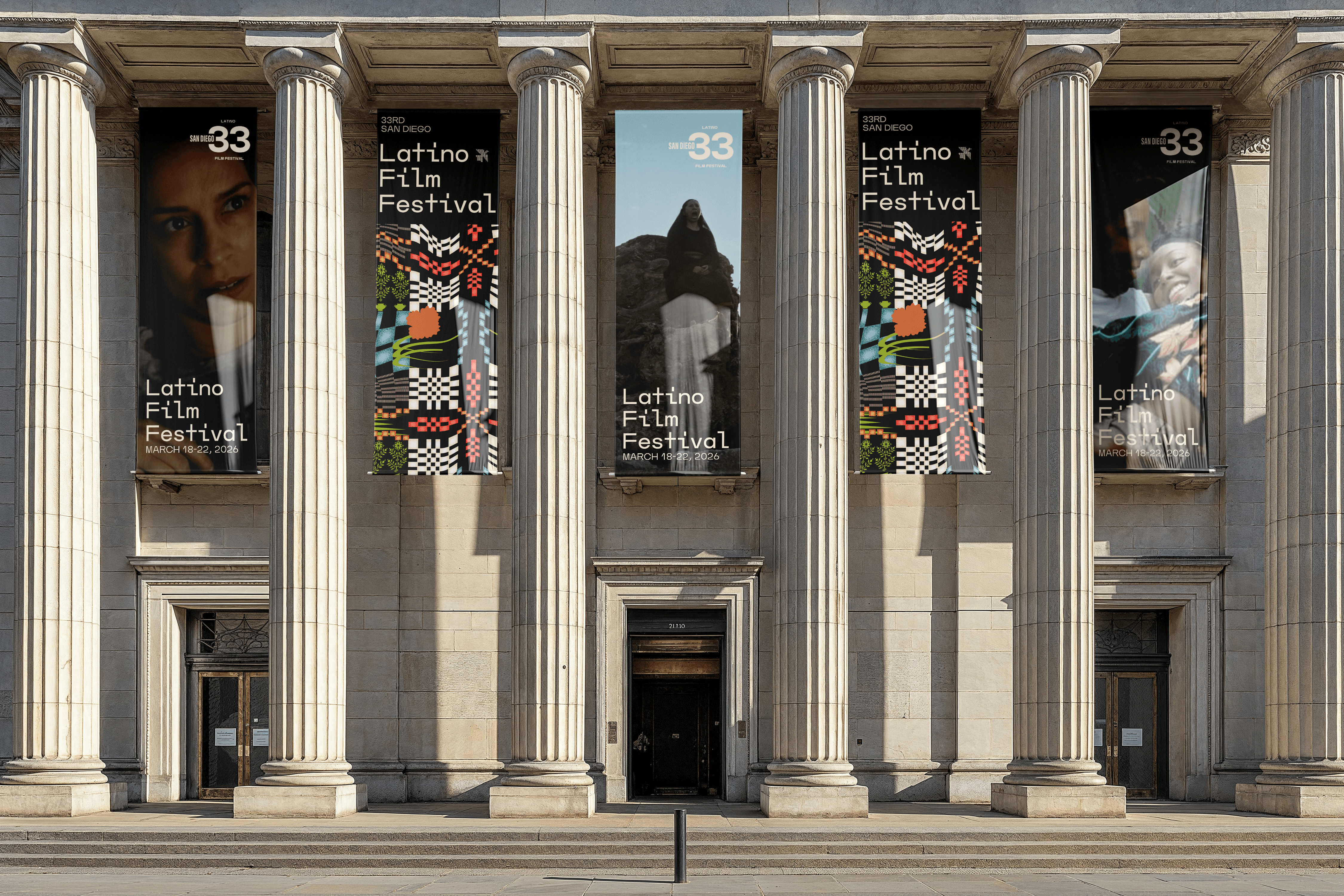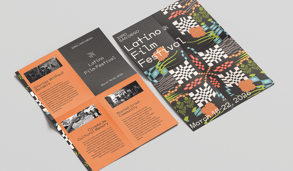 The San Diego Latino Film Festival is a platform for visibility and storytelling. In a time of political uncertainty and shifting narratives around immigration and identity, amplifying Latinx voices carries both creative and social weight. Tasked with designing the poster and visual direction for the festival’s 33rd year, I approached the project as both a designer and cultural participant by balancing celebration with responsibility, symbolism with clarity. The visual system draws from motifs of migration, resilience, and creative lineage. I concepted and executed the poster design, developed the broader visual language, defined the color palette and compositional system, and created scalable assets designed to function as the public-facing identity of the festival.